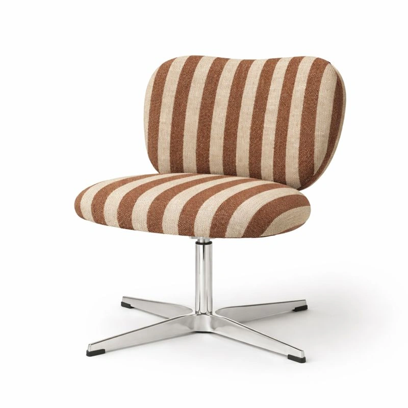 Moderner Drehstuhl Stoff Braun Weiss Gestreift Polsterstuhl Metallgestell