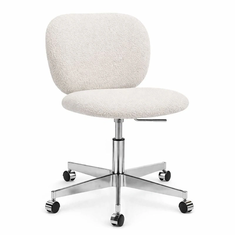 Moderner Drehstuhl Stoff Beige Boucle Polsterstuhl mit Rollen